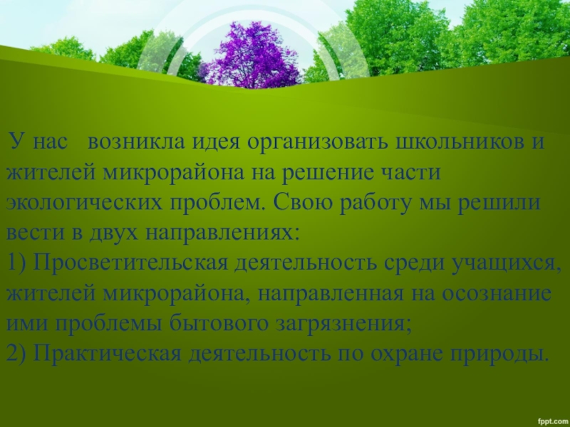 на решение части экологических проблем. Свою работу мы решили вести в двух направлениях: