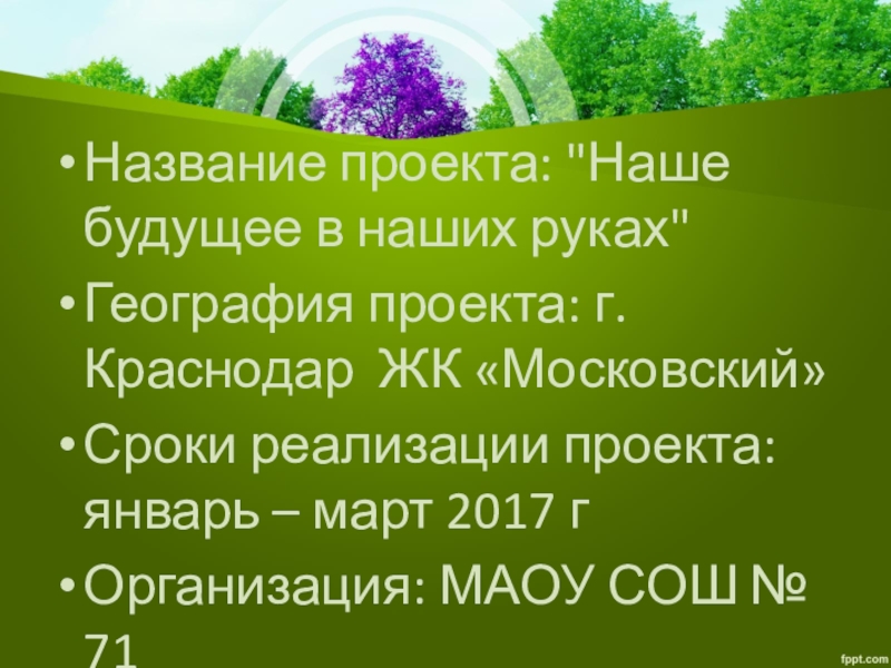Слайд 3Название проекта: "Наше будущее в наших руках"