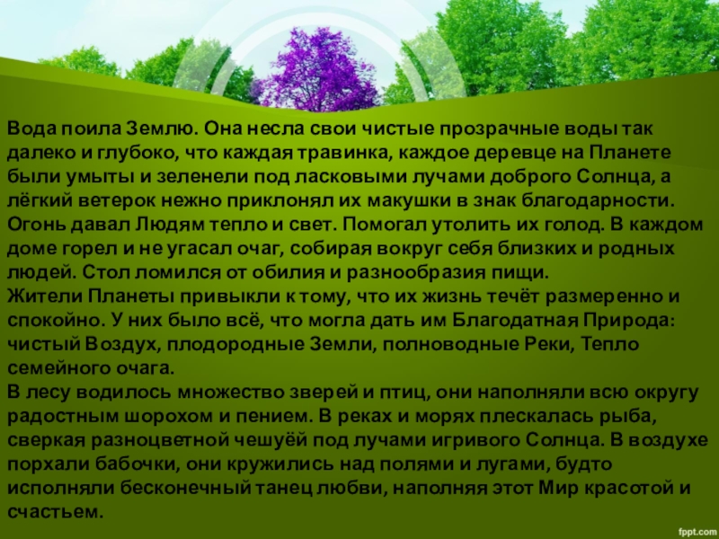 Слайд 37Вода поила Землю. Она несла свои чистые прозрачные воды так далеко