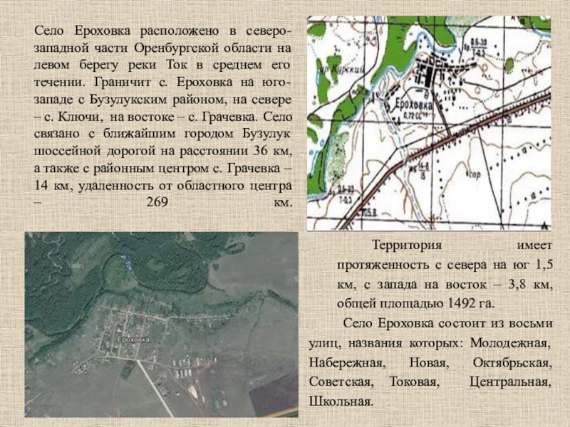 Слайд 7Село Ероховка расположено в северо-западной части Оренбургской области на левом берегу