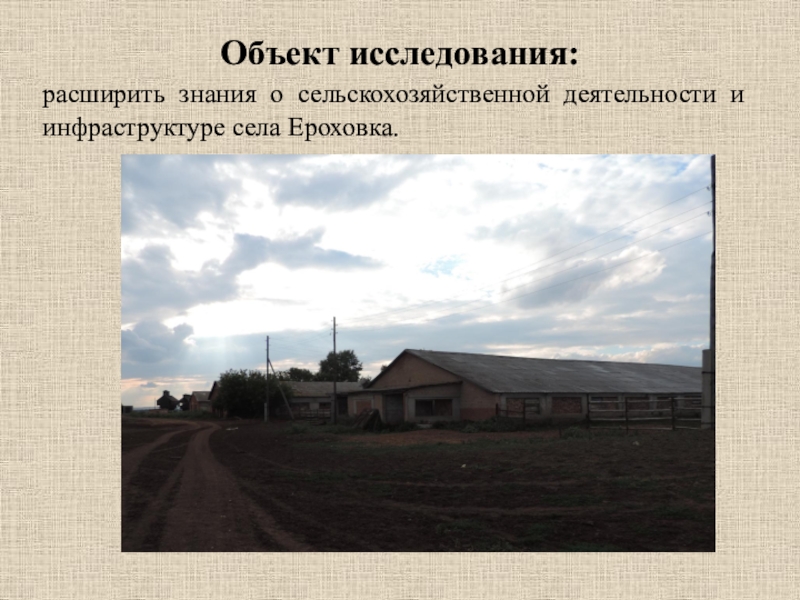 расширить знания о сельскохозяйственной деятельности и инфраструктуре села Ероховка.