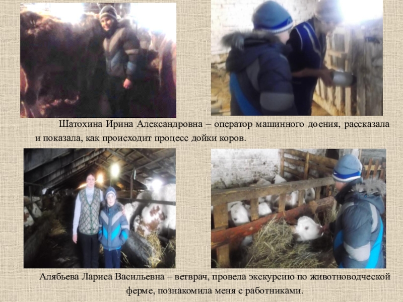Слайд 14Шатохина Ирина Александровна – оператор машинного доения, рассказала и показала, как
