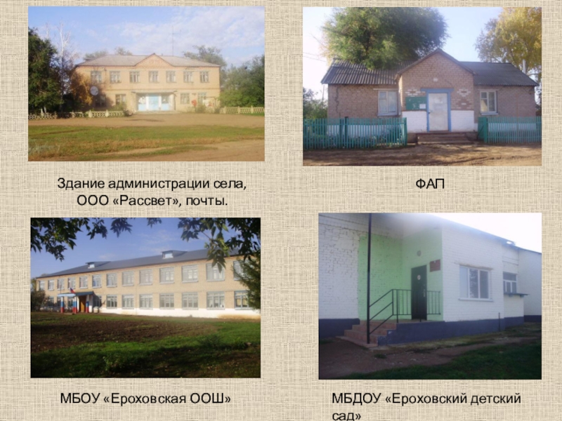 Слайд 8Здание администрации села, ООО «Рассвет», почты.