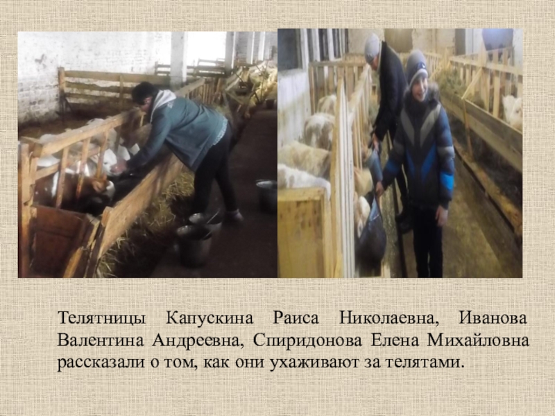 Слайд 15Телятницы Капускина Раиса Николаевна, Иванова Валентина Андреевна, Спиридонова Елена Михайловна рассказали