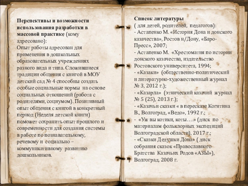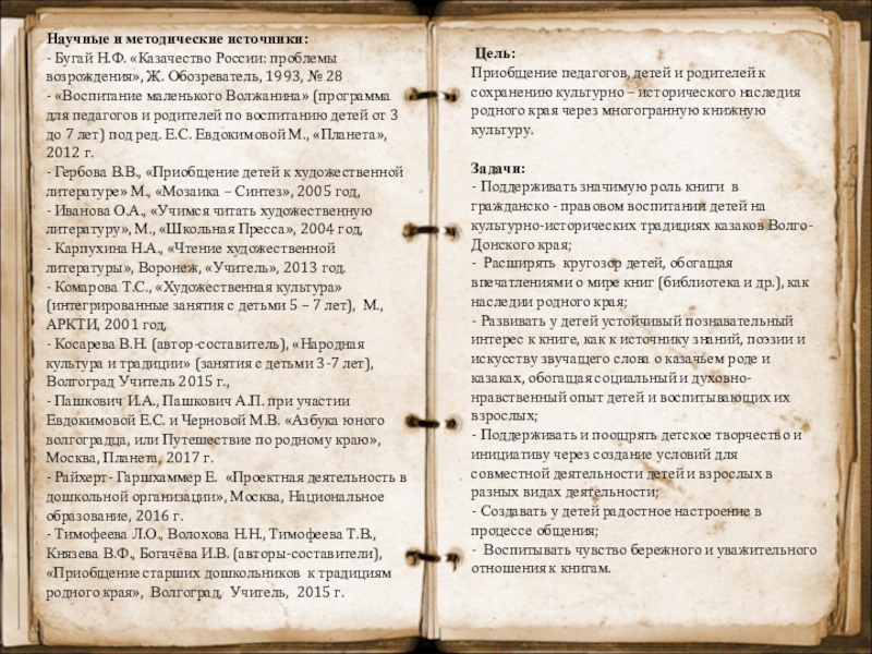 - развит устойчивый интерес участников образовательных отношений к традициям общественного и семейного воспитания казаков Волго-Донского края через книжную культуру;