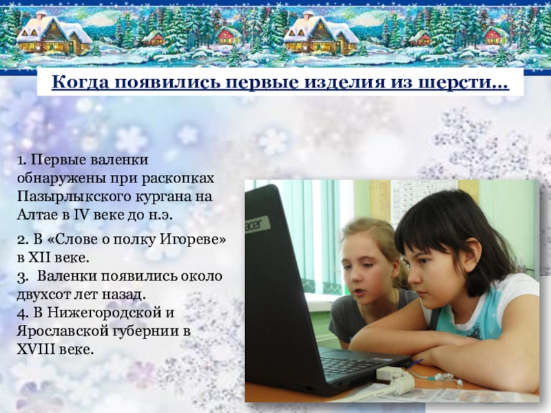 1. Первые валенки обнаружены при раскопках Пазырлыкского кургана на Алтае в IV веке до н.э.
