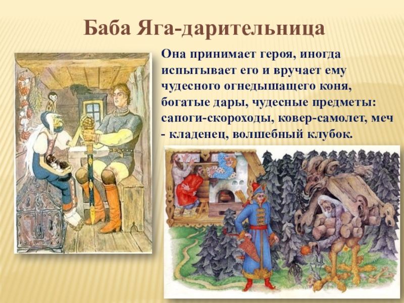 Из этой диковинной избы дети, да и взрослые, спасаются, перехитрив Ягу.