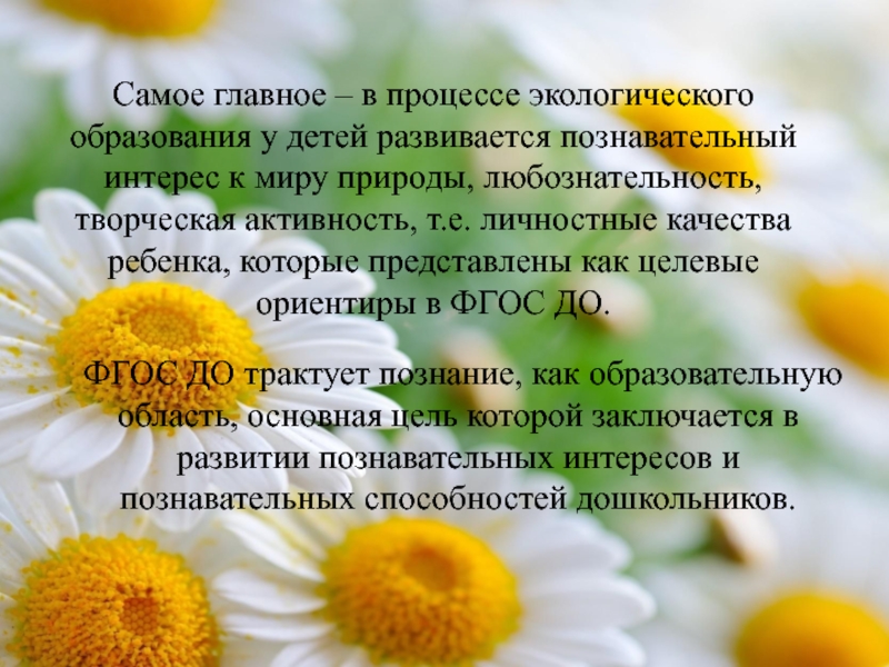 ФГОС ДО трактует познание, как образовательную область, основная цель которой заключается в развитии познавательных интересов и познавательных способностей дошкольников.