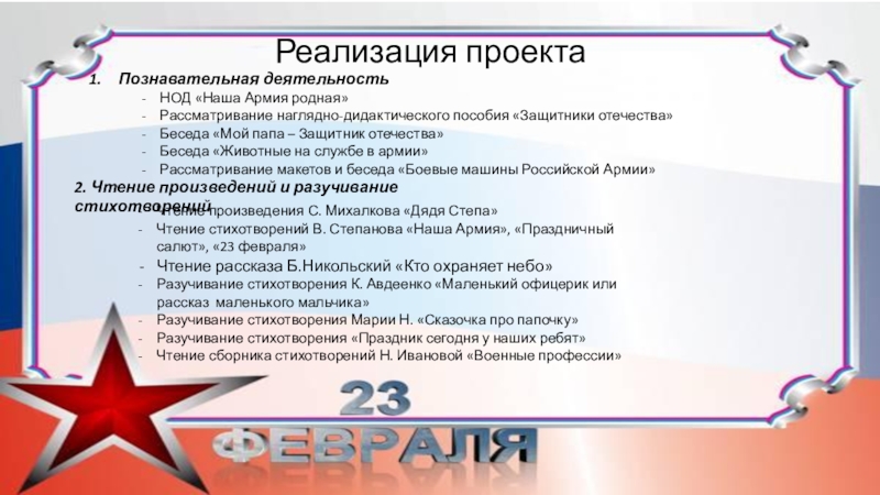Чтение стихотворений В. Степанова «Наша Армия», «Праздничный салют», «23 февраля»