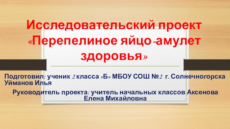 Руководитель проекта: учитель начальных классов Аксенова Елена Михайловна