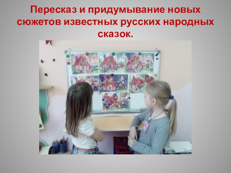 Слайд 37Пересказ и придумывание новых сюжетов известных русских народных сказок.