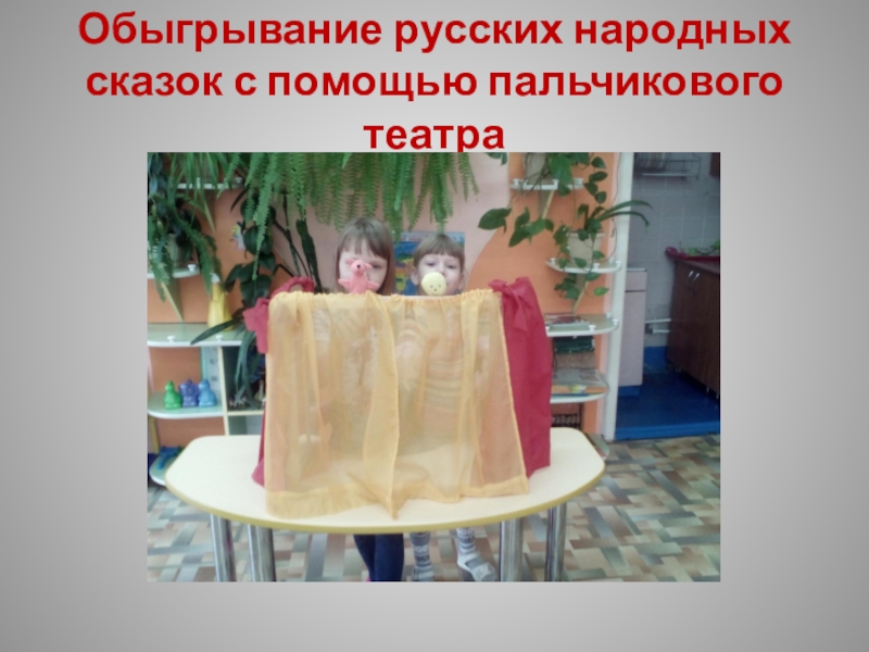 Слайд 40Обыгрывание русских народных сказок с помощью пальчикового театра