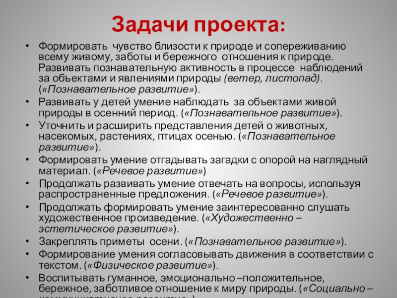 Формировать чувство близости к природе и сопереживанию всему живому, заботы