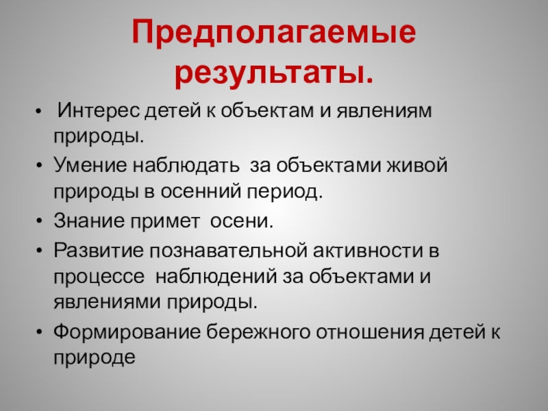 Развивать у детей умение наблюдать за объектами живой природы в осенний период. («Познавательное развитие»).