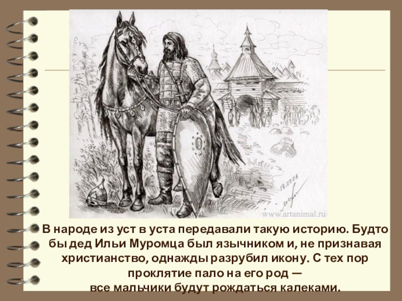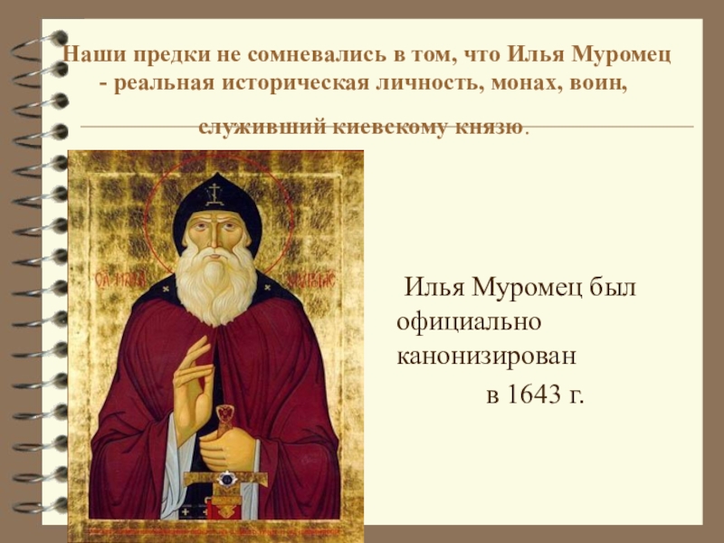 Слайд 33Наши предки не сомневались в том, что Илья Муромец - реальная