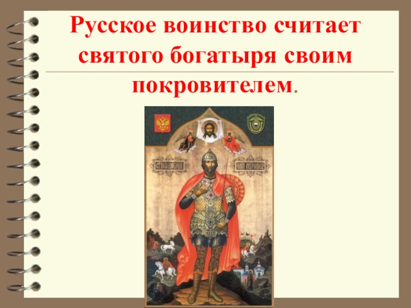 Слайд 48Русское воинство считает святого богатыря своим покровителем.
