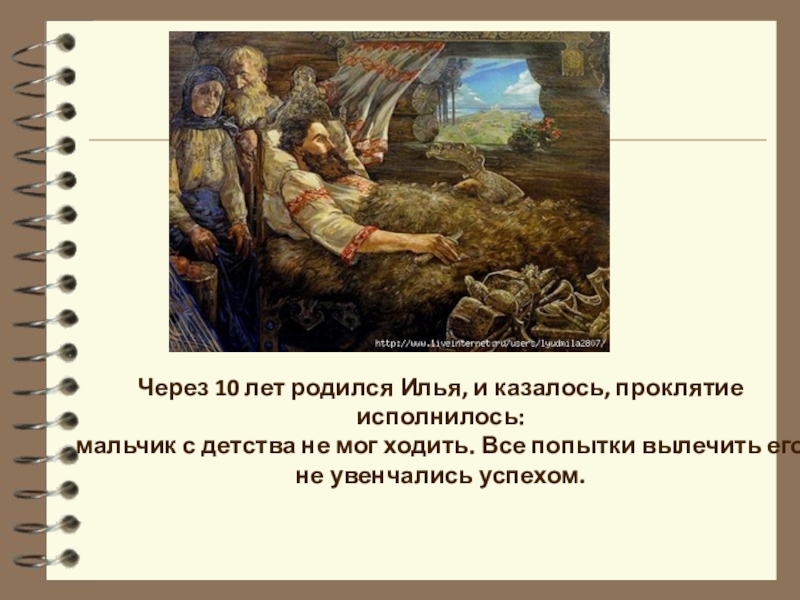 Слайд 23Через 10 лет родился Илья, и казалось, проклятие исполнилось: