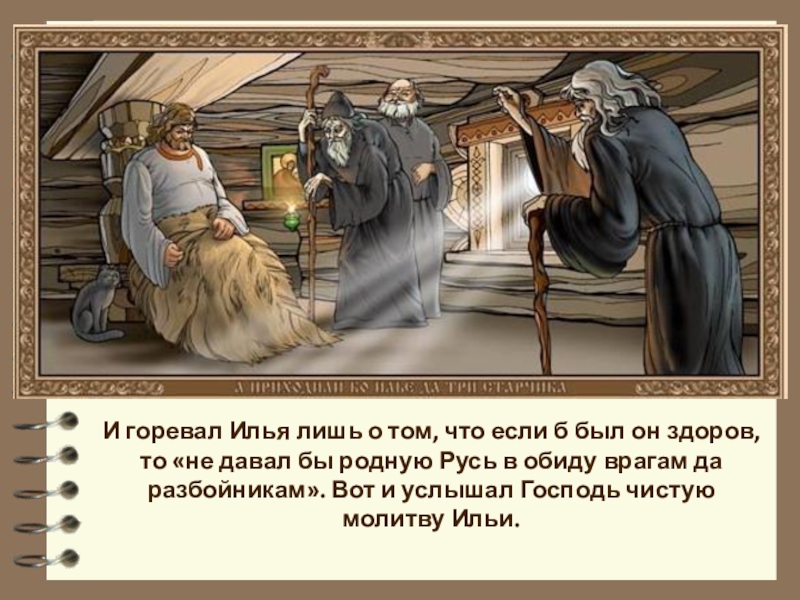 здоров, то «не давал бы родную Русь в обиду врагам да разбойникам». Вот и услышал Господь чистую молитву Ильи.