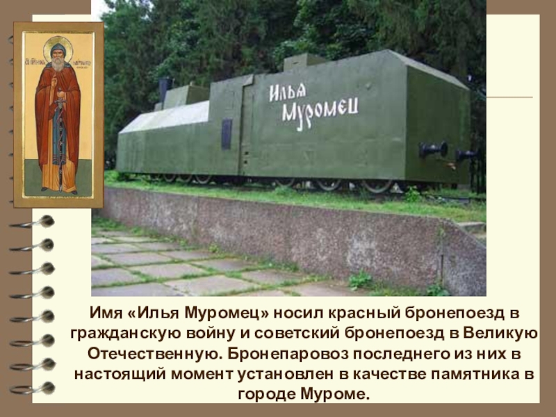 Слайд 42Имя «Илья Муромец» носил красный бронепоезд в гражданскую войну и советский
