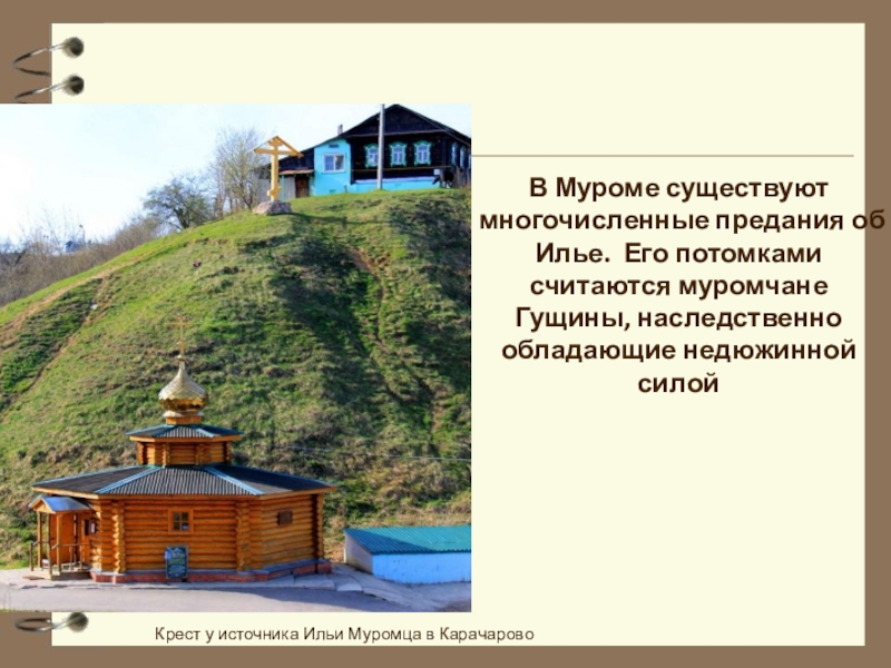 Слайд 34В Муроме существуют многочисленные предания об Илье. Его потомками считаются муромчане