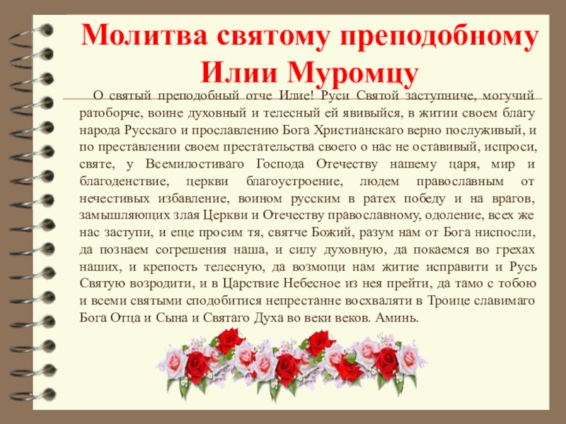 Слайд 47Молитва святому преподобному Илии Муромцу