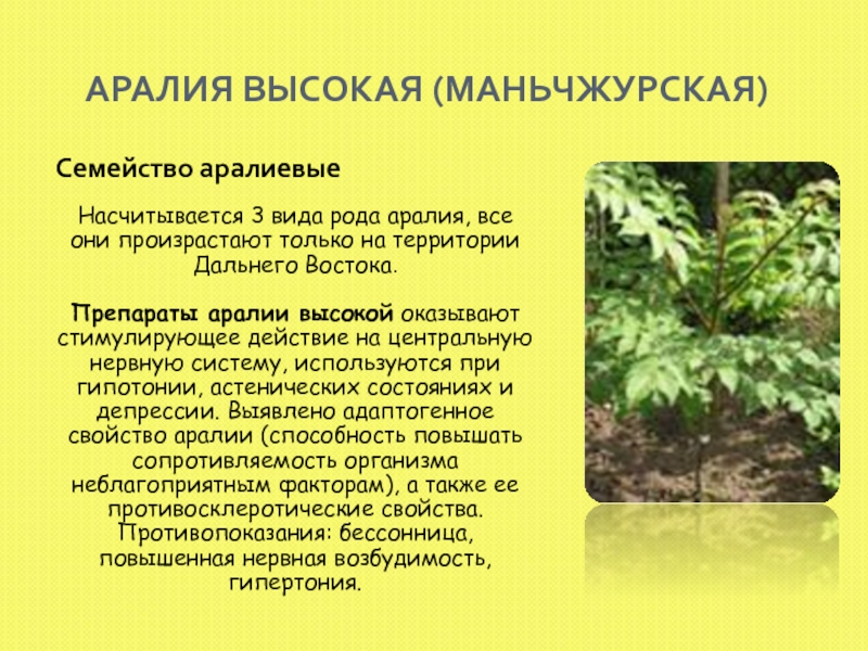 Слайд 18АРАЛИЯ ВЫСОКАЯ (МАНЬЧЖУРСКАЯ)