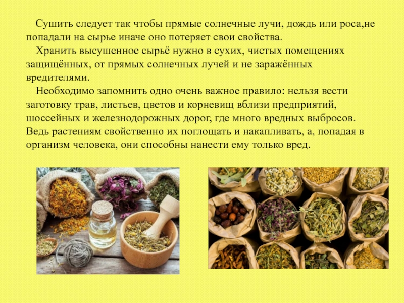 Слайд 32ПРАВИЛА СБОРА, СУШКИ И ХРАНЕНИЯ ЛЕКАРСТВЕННЫХ РАСТЕНИЙ.