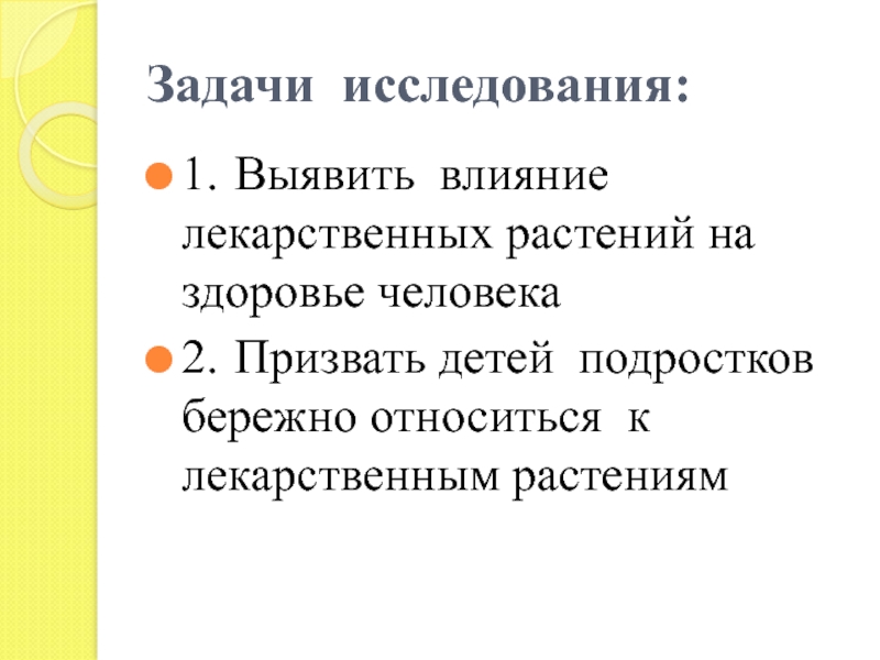 1. Выявить влияние лекарственных растений на здоровье человека