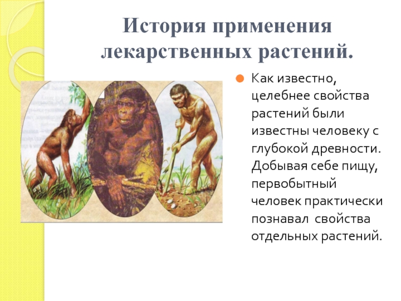 с глубокой древности. Добывая себе пищу, первобытный человек практически познавал свойства отдельных растений.
