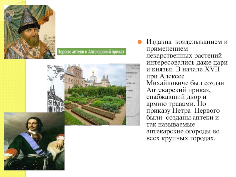 Издавна возделыванием и применением лекарственных растений интересовались даже цари и князья.
