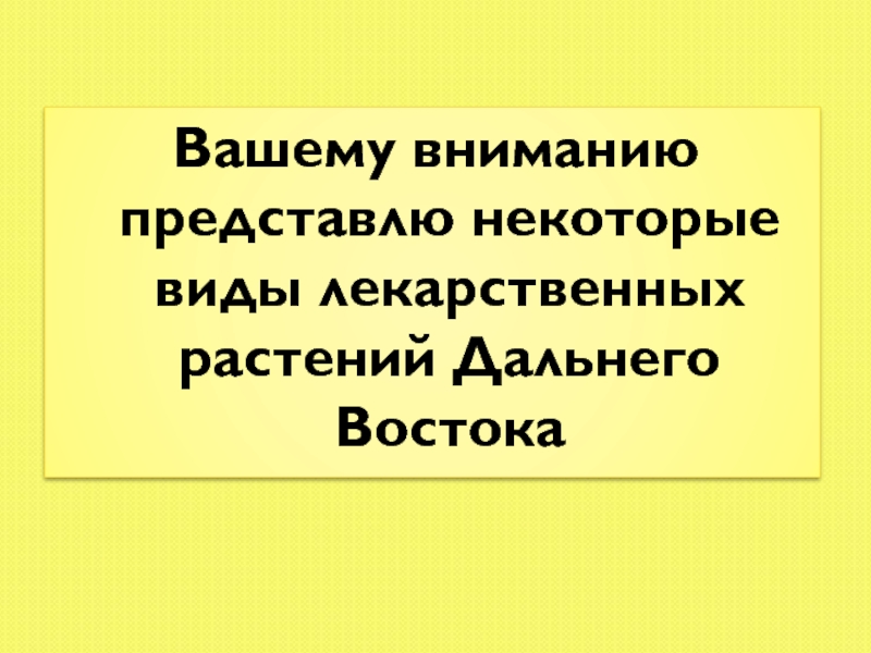 Слайд 14Вашему вниманию представлю некоторые виды лекарственных растений Дальнего Востока