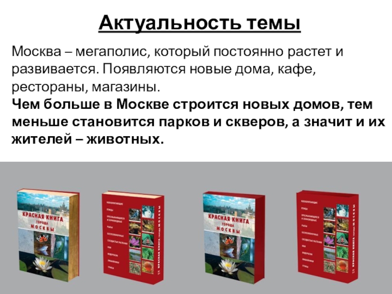 Природа уничтожается, всё больше видов животных исчезает или попадает в Красную книгу Москвы.