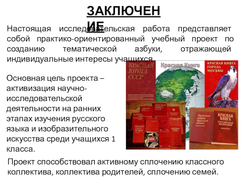 Основная цель проекта –активизация научно-исследовательской деятельности на ранних этапах изучения русского языка и изобразительного искусства среди учащихся 1 класса.