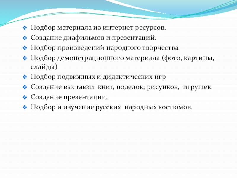 Развитие у детей важнейших духовно-нравственных качеств (милосердия, справедливости, трудолюбия, дружелюбия, миролюбия и других) на основе лучших традиций народной культуры, в том числе взаимопомощи, гостеприимства, стремления не запятнать добрую память и добрые дела предков.