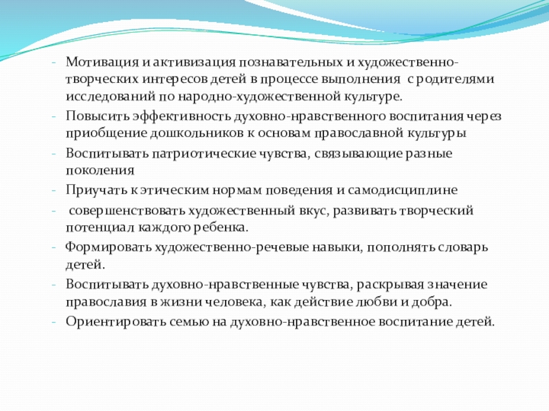 Слайд 4Мотивация и активизация познавательных и художественно-творческих интересов детей в процессе выполнения