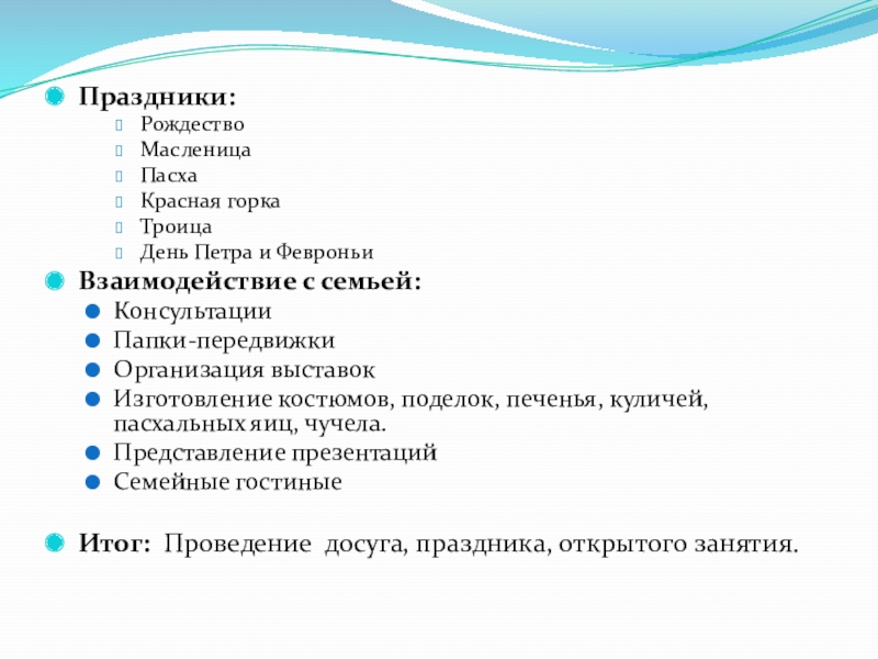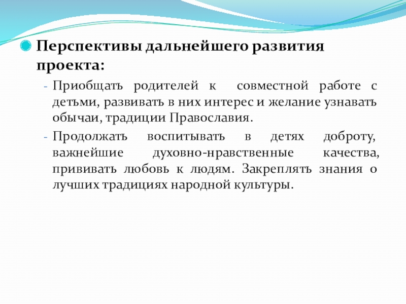 Цель: Планомерное знакомство дошкольников с базовыми нравственно-духовными ценностями отечественной культуры. Заложить основы духовно-нравственной личности с активной жизненной позицией.