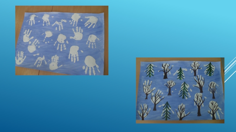 Рисование «Варежки», «Зимняя шапка», «Наша нарядная ёлка»; Лепка «Деревья в снегу», «Беленький зайчик»; Аппликация «Белая снежинка» «Красивая ёлочка».