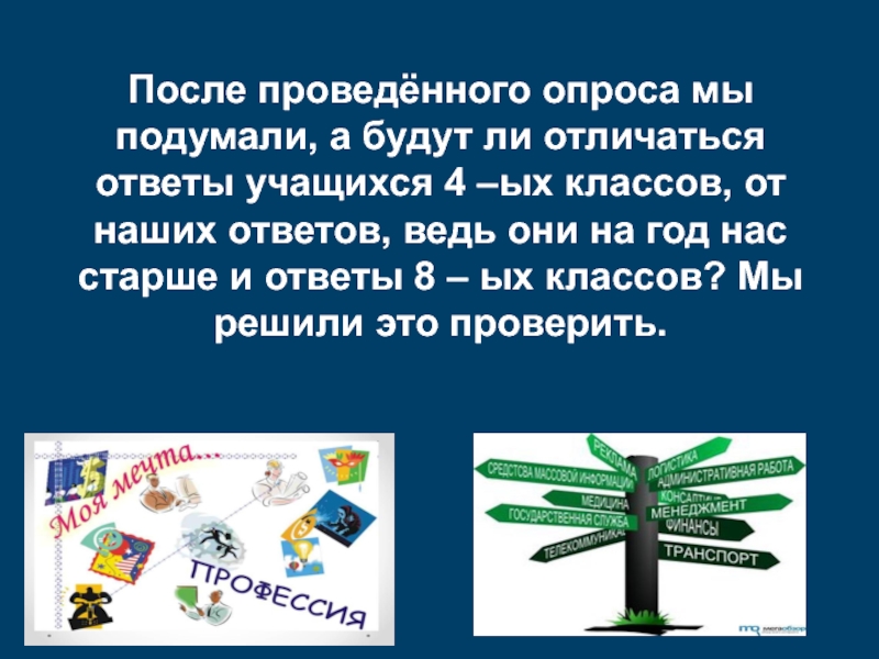 Слайд 7После проведённого опроса мы подумали, а будут ли отличаться ответы учащихся
