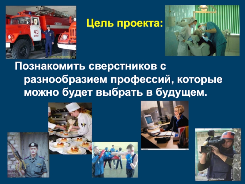 Познакомить сверстников с разнообразием профессий, которые можно будет выбрать в