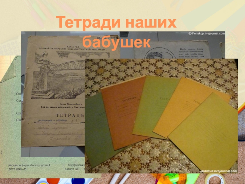 Слайд 20Тетради наших бабушек