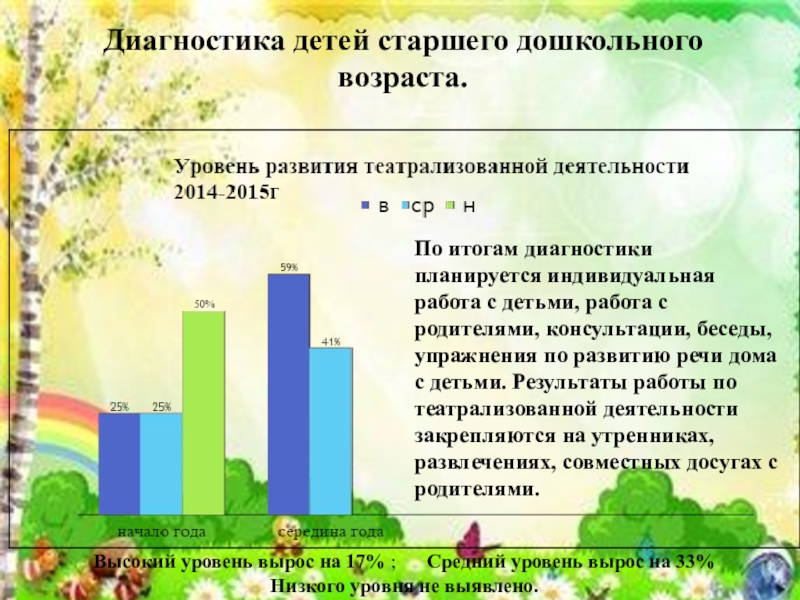 В результате проделанной работы была подтверждена гипотеза в том, что развития связной речи детей старшей группы протекает наиболее успешно, если системно использовать различные виды театрализованной деятельности.