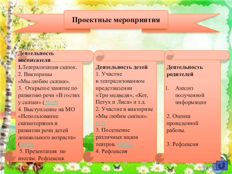 19. Открытое занятие «В гостях у сказки» 10. Видео презентация проекта.