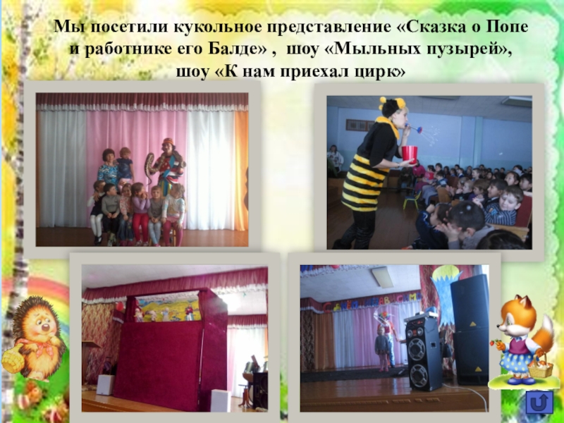 Слайд 32Мы посетили кукольное представление «Сказка о Попе и работнике его Балде»