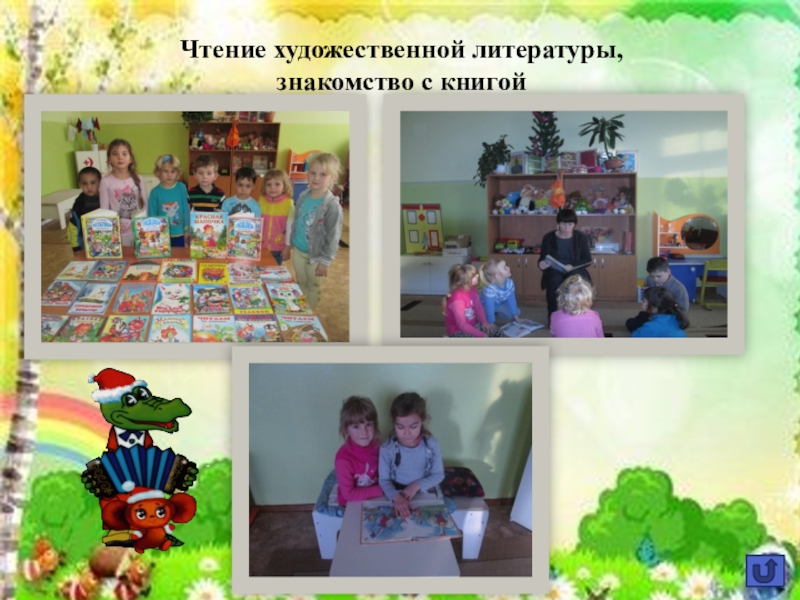Слайд 13Чтение художественной литературы, знакомство с книгой