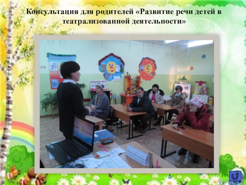 Слайд 16Консультация для родителей «Развитие речи детей в театрализованной деятельности»