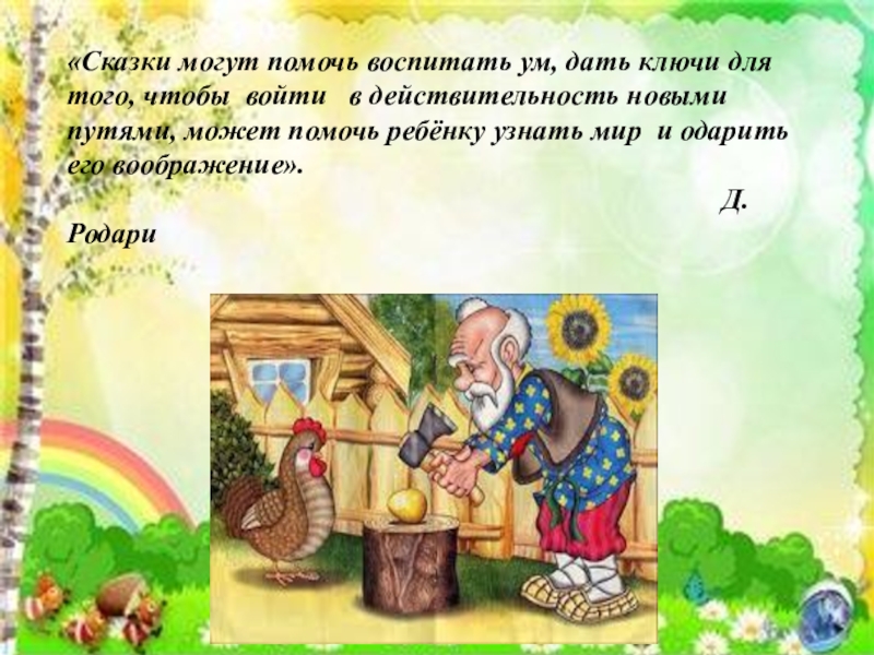 Слайд 2«Сказки могут помочь воспитать ум, дать ключи для того, чтобы войти