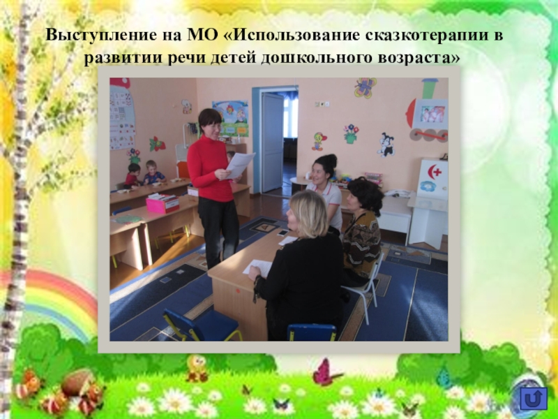 Слайд 35Выступление на МО «Использование сказкотерапии в развитии речи детей дошкольного возраста»