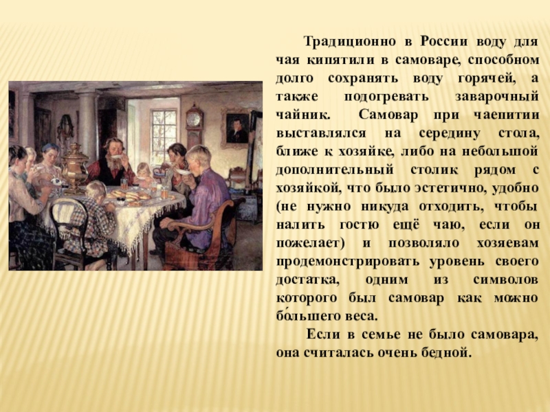 Слайд 9 Традиционно в России воду для чая кипятили в самоваре, способном долго