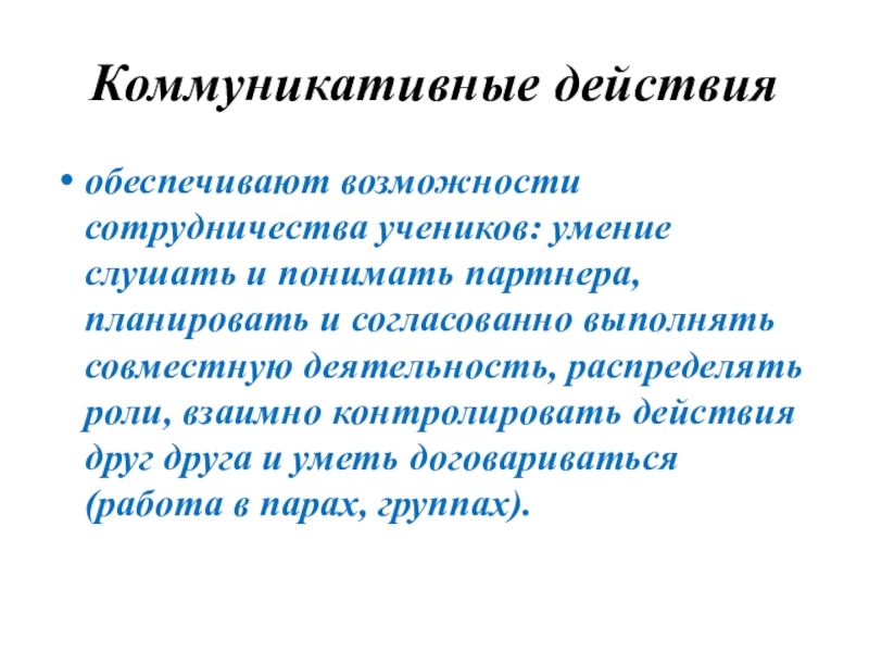 обеспечивают возможности сотрудничества учеников: умение слушать и понимать партнера, планировать