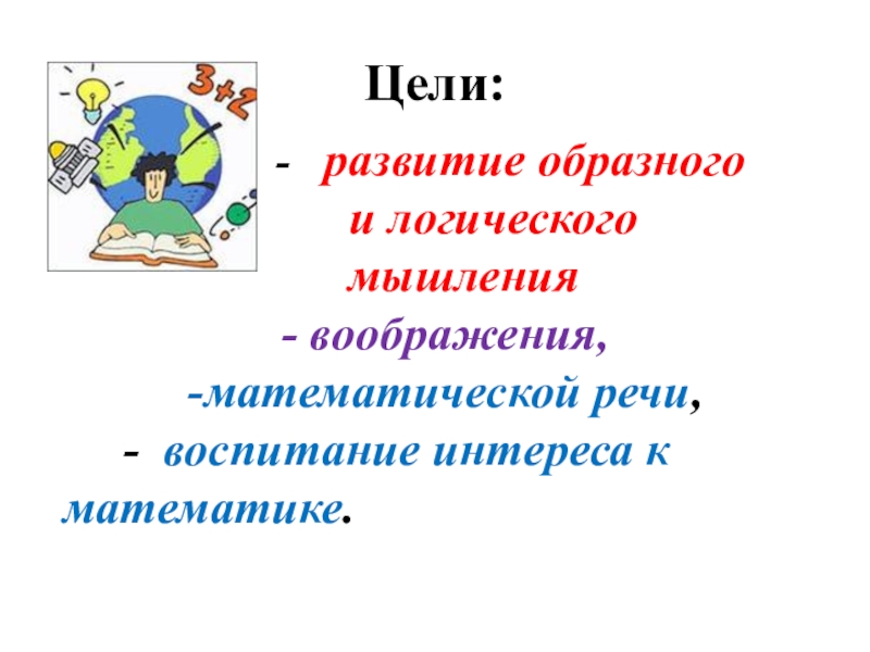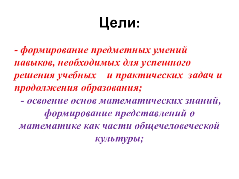 - освоение основ математических знаний, формирование представлений о математике как части общечеловеческой культуры;